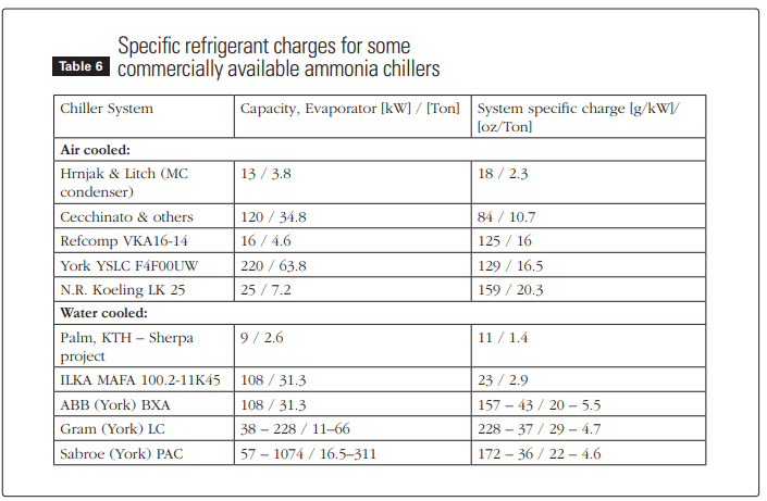 Litch and Hrnjak presented data for some small ammonia systems with published charges in Table 6.