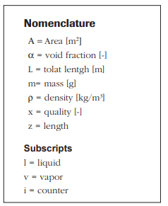 Even though void fraction has been studied extensively [see Zivi, (1964), Butterworth, (1975), Newell, (1999), Adams et al., (2003) & (2006), etc.] mass flux effects were not always considered. Typically, for a given fluid and local quality, increase of the mass or heat flux affect flow regimes in a way that increases void fraction thus reducing charge.
