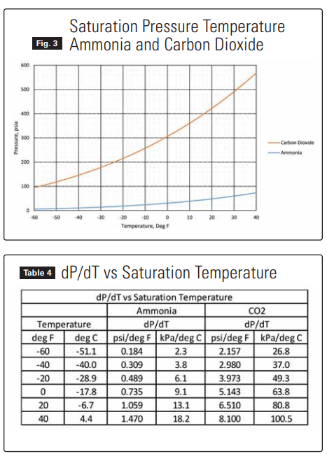 Table 1 below compares the saturation pressures for CO2 and ammonia and illustrates the significantly higher pressures (and consequently higher strength requirements) for CO2 .