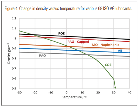 In refrigeration systems with oil reservoirs, flooded evaporators, etc., to ensure good oil return to the compressor, the refrigerant oil must have either a higher density than the CO2 refrigerant so that it can be drained from the reservoir, or good miscibility.