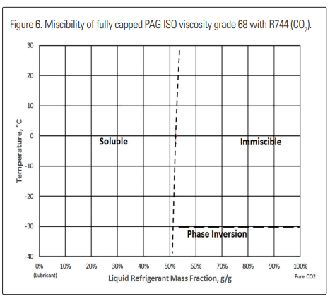 Modified types of fully capped PAGs have reported improved miscibility in low- lubricant concentrations. These also have an upper critical solution temperature that is consistent over a wide range of lubricant concentrations. A special type of oil-soluble PAG has been tested for miscibility by the author and found to have a small miscibility range where the oil concentration is less than about 2%. This lubricant may be useful if oil concentrations reaching the evaporator can be limited. Of potential interest is that this oil-soluble lubricant has also been used with ammonia DX systems.