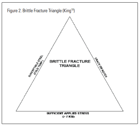 states that the following three conditions are necessary for brittle fracture to occur: