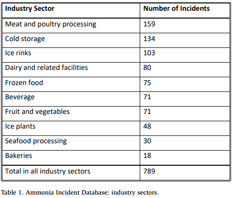 1. How many incidents occur in the ammonia refrigeration industry?