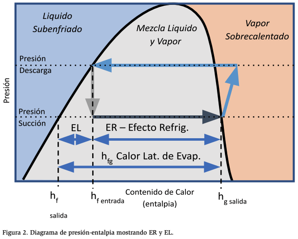 El Efecto Refrigerante Neto (ERN) Es la diferencia en entalpia entre el líquido entrando y el vapor saturado (salida) en el proceso en consideración