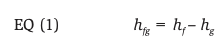 El Símbolo hf es usado para representar la Entalpia de un liquido saturado, y hg para la entalpia de vapor saturado. El símbolo hfg representa el Calor latente de evaporación, o la diferencia entre la entalpia ente el liquido saturado y vapor saturado a una temperatura constante. Esto es frecuentemente enlistado en las tablas termodinámicas. Puede ser calculado restando la entalpia del líquido saturado de la entalpia de vapor saturado a la temperatura y presión en consideración.