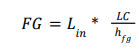 Flash Gas (FG): Es el vapor generado cuando se enfría el liquido a la temperatura de saturación en el proceso que se esta analizando. Calculando la cantidad DE flash gas se requiere el uso de los términos descritos arriba para el efecto neto de refrigeración y el enfriamiento de liquido. La carga de flash gas producida es el producto del flujo de masa de líquido (L) y la diferencia de entalpia del enfriamiento del liquido (LC). El flash gas es simplemente esa carga dividida por el calor latente de evaporación (Hfe)