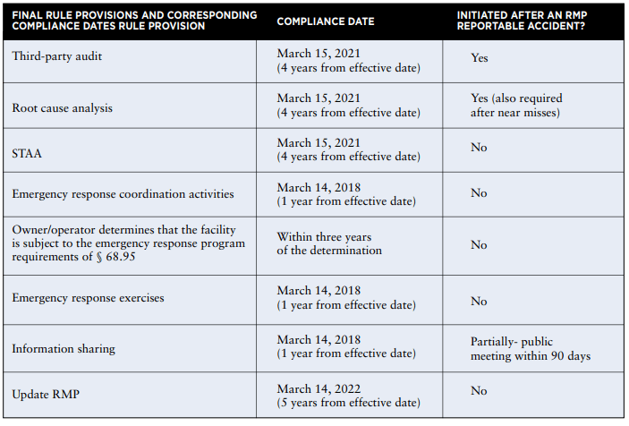 The Final Rule maintains the same compliance date schedule as the Proposed Rule. The effective date of the Final Rule is March 14, 2017. The table below shows the compliance dates for the various requirements.