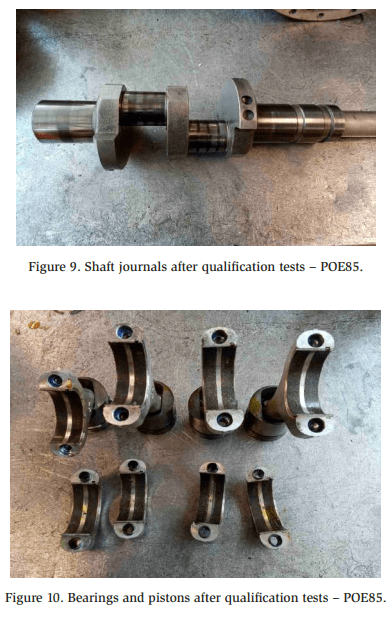 The figures prove that both PAG68 and POE85 can be used with CO2 in low- and medium-temperature applications. In particular, PAG provided a slightly lower surface polishing on the shaft journals and a slightly lower wear rate on the bearing surfaces.