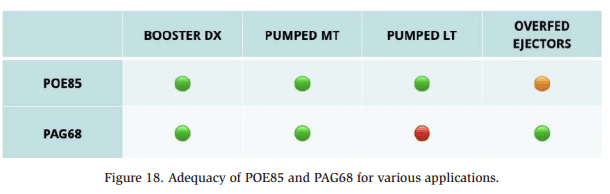 Therefore, both POE85 and PAG68 are valid options for typical MT pumped systems, whereas POE85 is the preferred solution for LT operations.