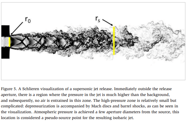 Here, we adopt an approach to estimate Vz for sonic jets by considering the conservation of momentum, mass, and ammonia concentration along with submodels to estimate a release pseudo-source radius, rs (m), and dimensionless entrainment coefficient, α. (Webber 2011)