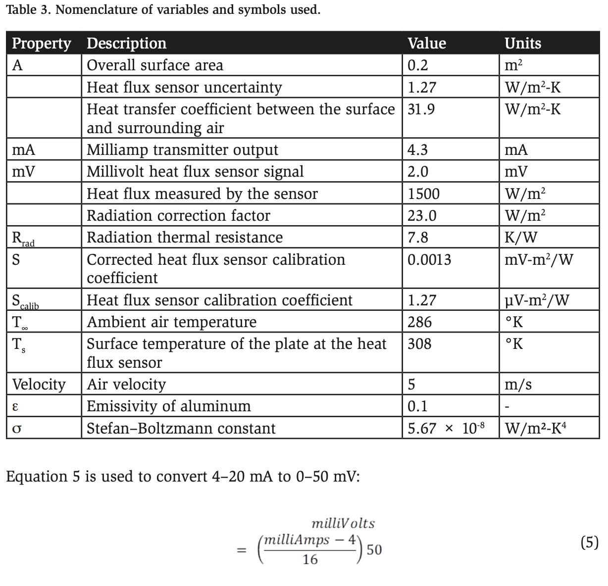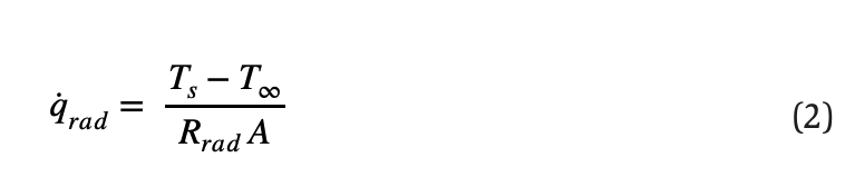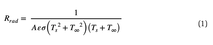 As shown in Figure 2, a correction factor(ed b) was applied to remove radiation from the ( the measured flux, isolating the heat transfer caused by convection. The radiation correction resistance term (Rrad) was calculated using Equation 1, taken from Nellis & Klein (2009). The nomenclature of all the symbols and variables is listed in Table 3 in the Appendix.