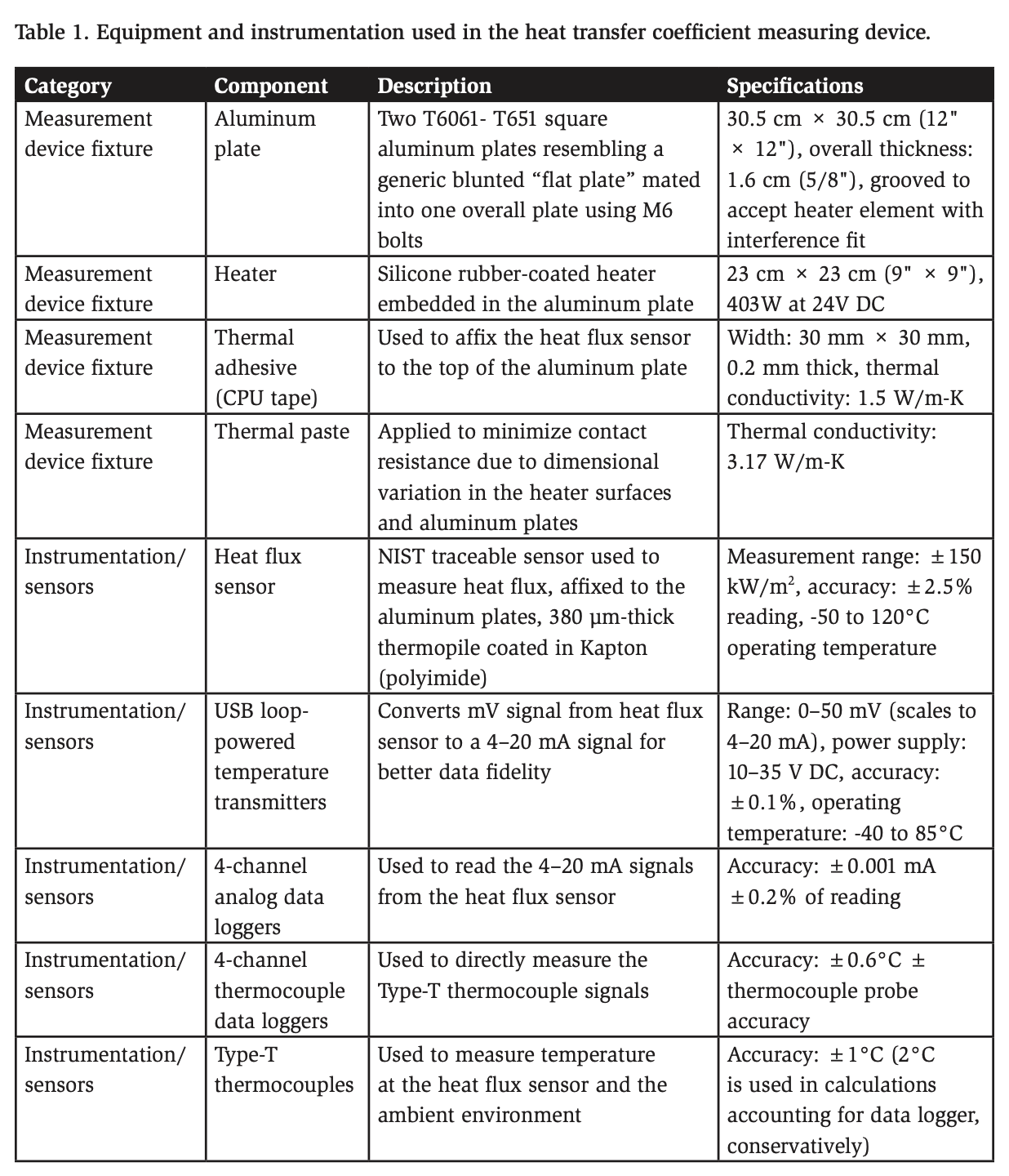 Carson, James & Willix, Jim & North, Mike. (2006). Measurements of heat transfer coefficients within convection ovens. Journal of Food Engineering – J FOOD ENG. 72. 293-301. 10.1016/j.jfoodeng.2004.12.010. FluxTeq. (2024). PHFS-01 Heat Flux Sensor.