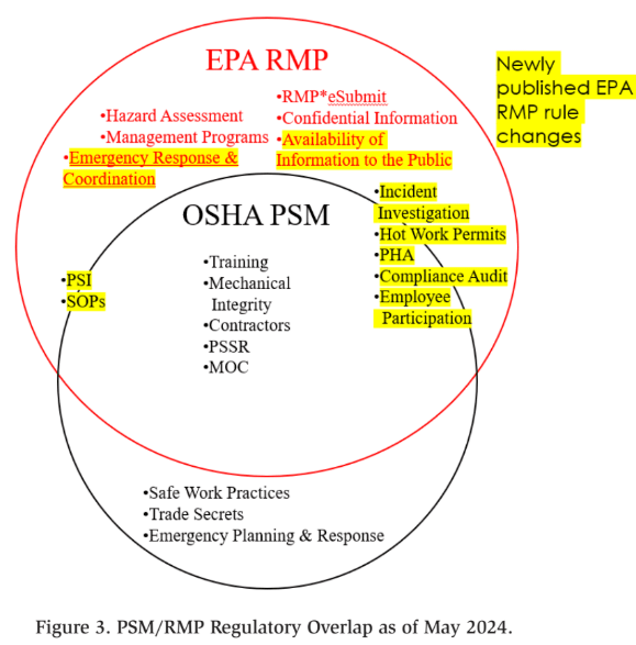 With the publication of these “final” rule changes in March 2024, the regulatory landscape has become less clearly defined. Figure 3 shows the overlap between the PSM and RMP regulations as of May 2024.