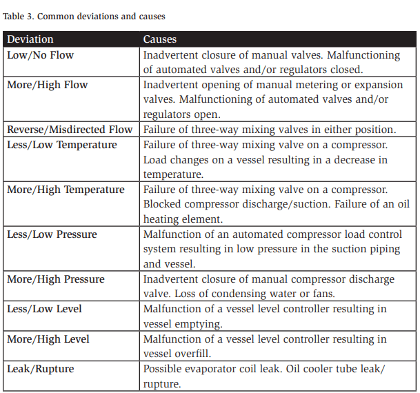 Table 3 represents a commonly applied set of deviations along with some typically identified causes and immediate consequences. These deviations are usually applied to all nodes of the PHA.