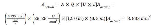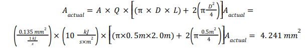 Example 2: Consider the same system but now refer to the European Standard – 378-22, which requires that Q = 10kJ/s*m2 is applied over the vessel’s total surface area. Then, the required actual flow area is