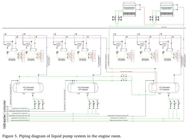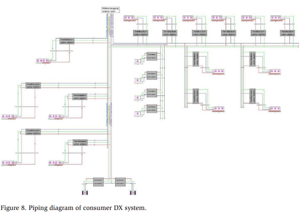 Figure 1 shows this overview of Jensen (2022), the DX plant, and the other ammonia pump plant. The DX design is shown in red, and the pump system is shown in blue.