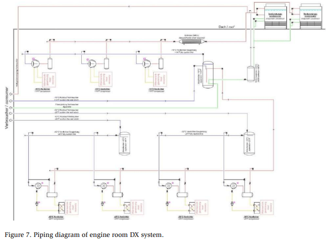 The DX system was shown to be an energy-efficient and low-charge refrigeration plant design. DX is a good solution not only in a decentralized or single-temperature level approach but also in a centralized multistage approach. Still, the primary task is to inform and convince relevant companies that DX is available and manageable. Interestingly, some systems are called ammonia DX systems, but they still use NH3 pumps for liquid management.